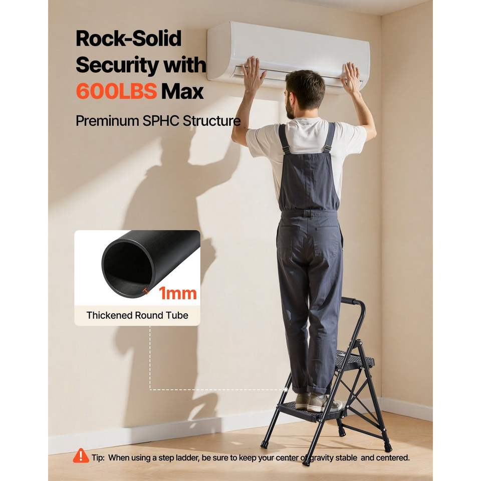 Sgabello e Poggiapiedi Portatile Pieghevole in Acciaio a 2 Gradini Leggero con Pedale Antiscivolo Largo e Impugnatura Confortevole, Capacità 600 Libbre