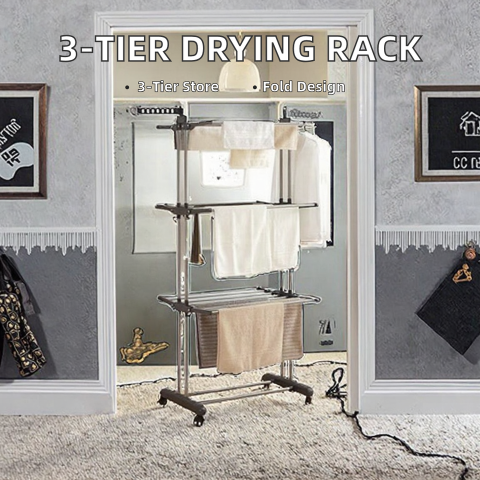 Lightweight 3-Tier Foldable Iron Clothes Drying Rack Collapsible Standing Laundry Shelves for Kitchen or Bathroom Use