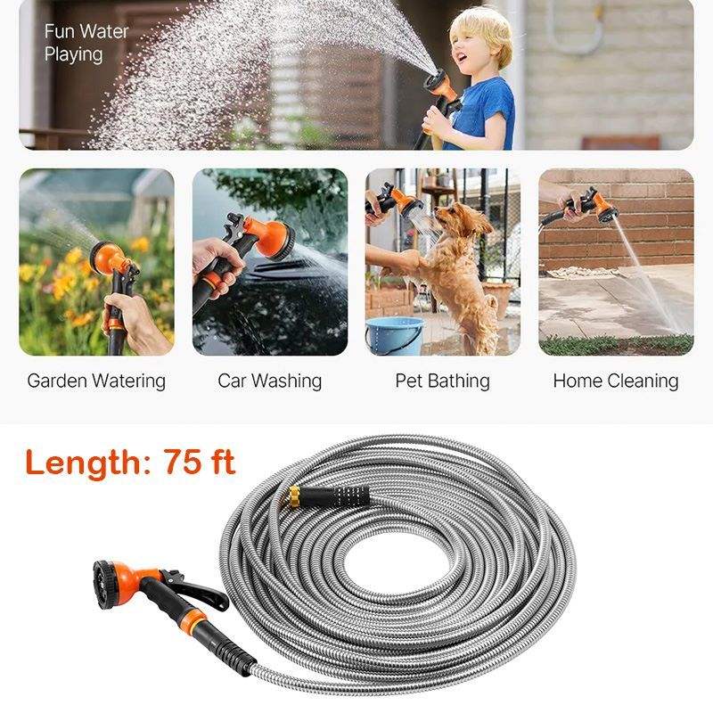 Avvolgitubo da Giardino in Metallo Leggero da 75 Piedi per Uso Esterno/Cortile