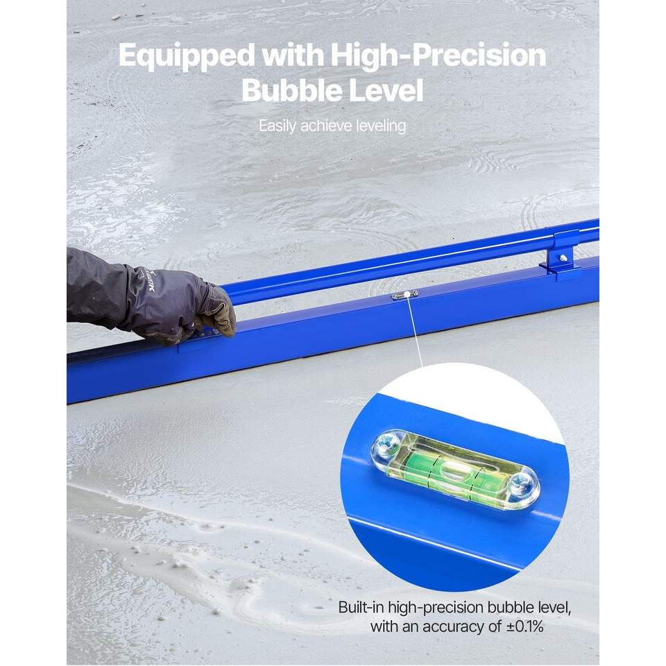 Spatola per calcestruzzo in alluminio leggero da 48 pollici con bolla di livello, tappo terminale per una facile pulizia e manico reversibile per la distribuzione del calcestruzzo