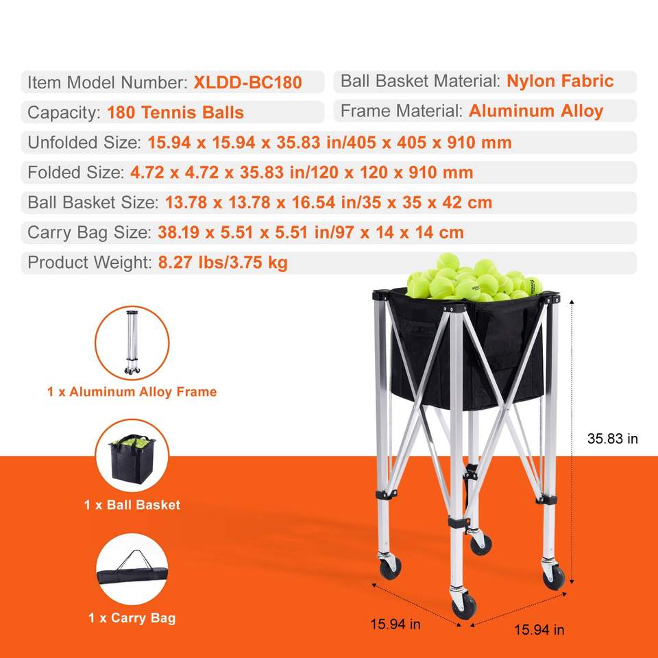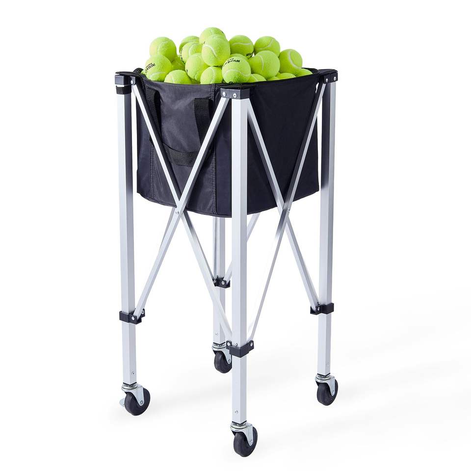 Carrello Portapalle da Tennis Pieghevole in Lega di Alluminio Leggero, Capacità 180 Palline, con Ruote Rimovibili e per Carrelli a Mano