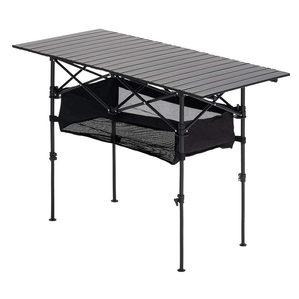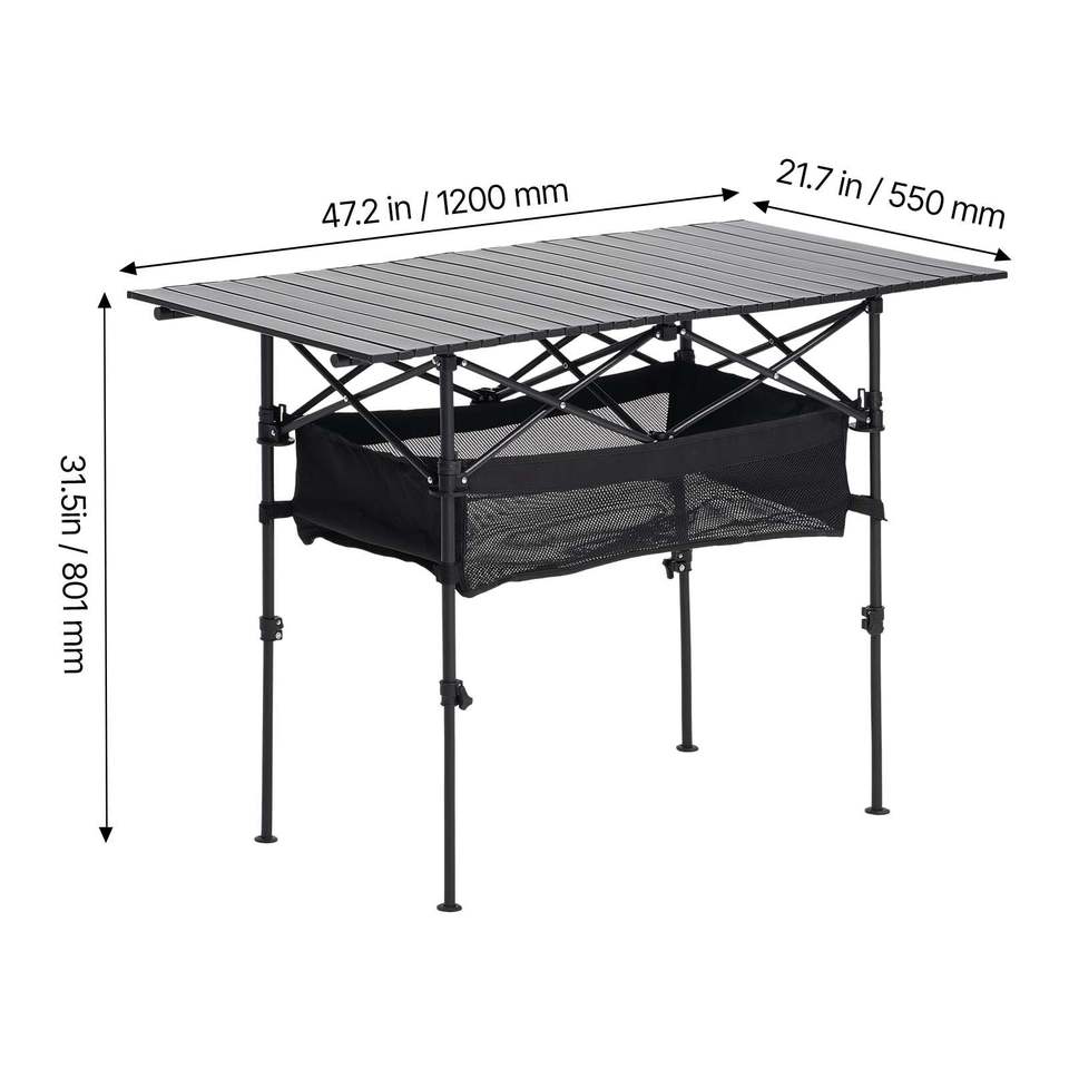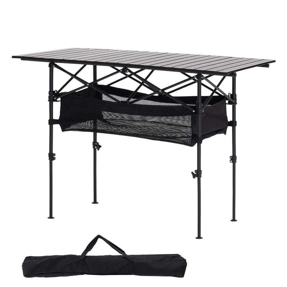 Tavolo da Campeggio Pieghevole in Alluminio Leggero, Tavolini Portatili con Altezza Regolabile, Ampia Borsa Portaoggetti per Attività all'Aperto