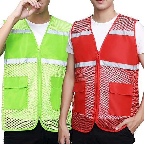 Gilet da Volontario Leggero e Traspirante in Rete, Alta Visibilità con Strisce Riflettenti, Tasche Multiple, Logo Personalizzato Stampato