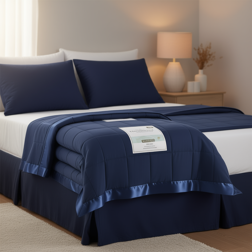Tahoe Pacific Down Alternative Bed Blanket King Size Lightweight Quilted Solid Navy Classic Style All Season Use