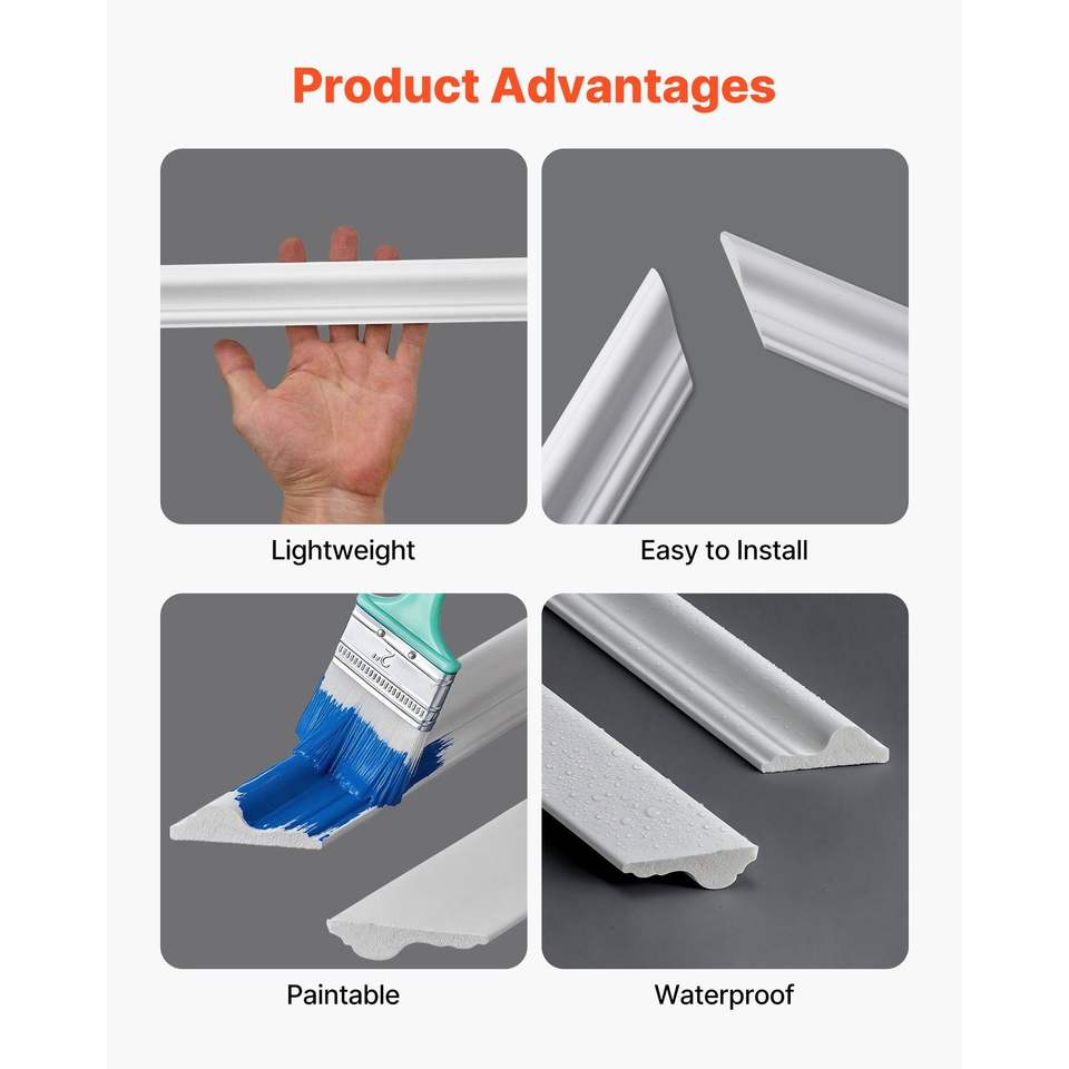 Lightweight Easy-to-Paint Polystyrene Wall Molding 3-Pack Dual-Line Wainscoting Panels Kit Wide Narrow Profile for Wall Boards