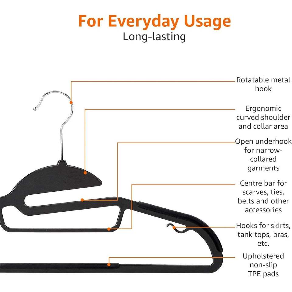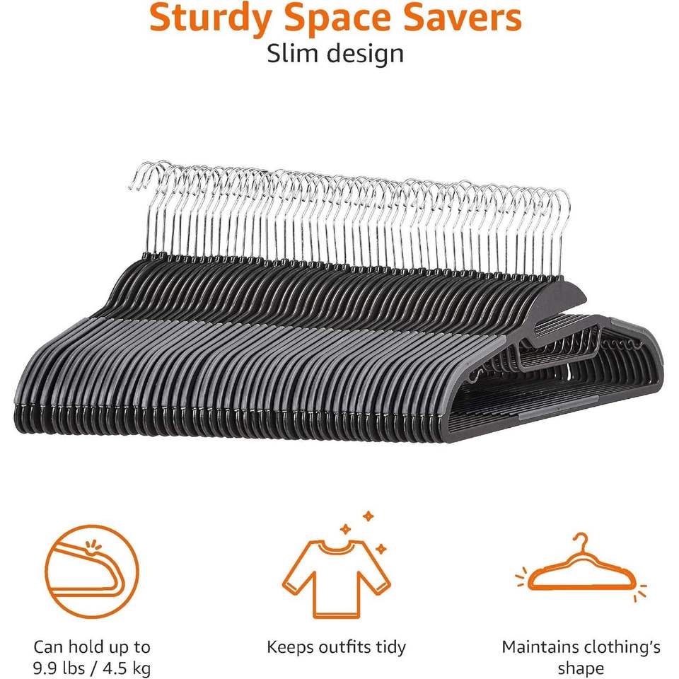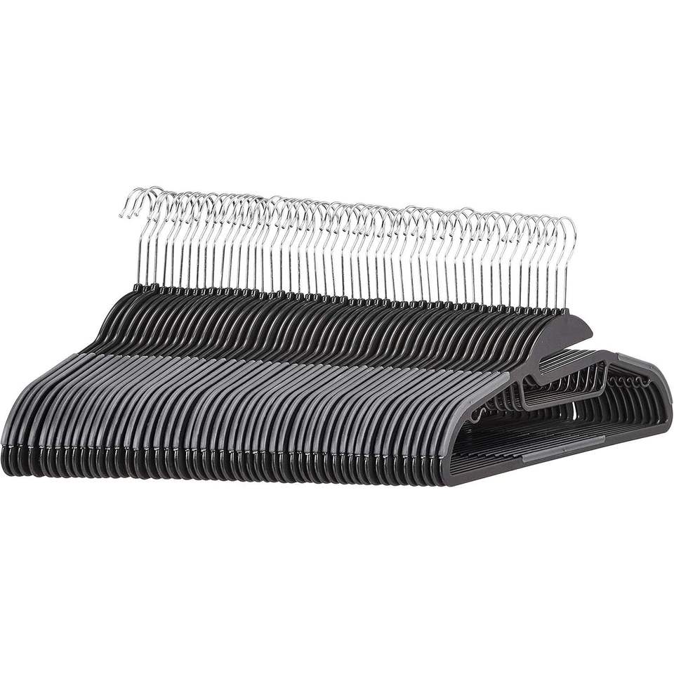 Appendiabiti in plastica grigia leggeri e antiscivolo, resistenti e salvaspazio con barra orizzontale in gomma, confezione da 50