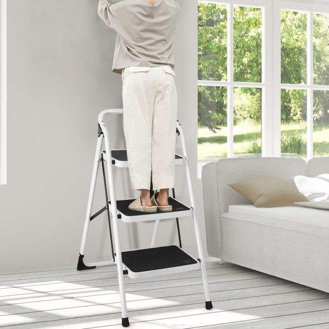 Sgabello a Piattaforma Pieghevole HD a 3 Gradini Leggero, Facile da Usare e Portatile