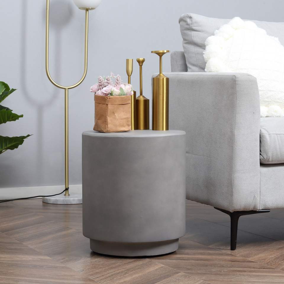 Tavolino Rotondo Leggero Grigio Chiaro con Finitura in Cemento per Uso Esterno