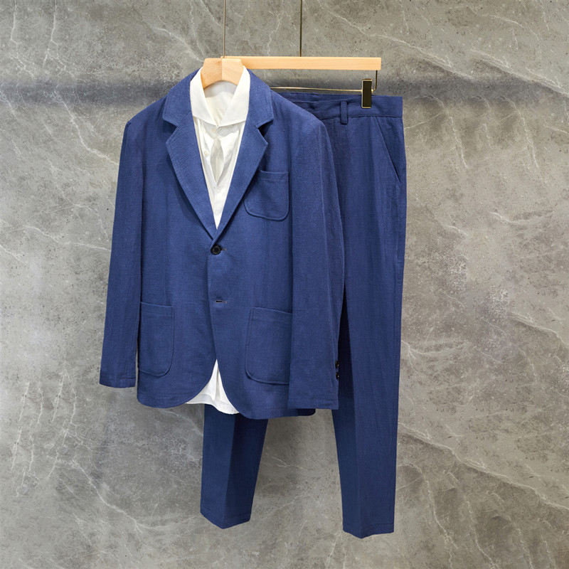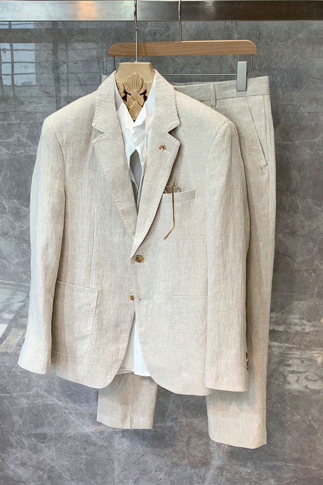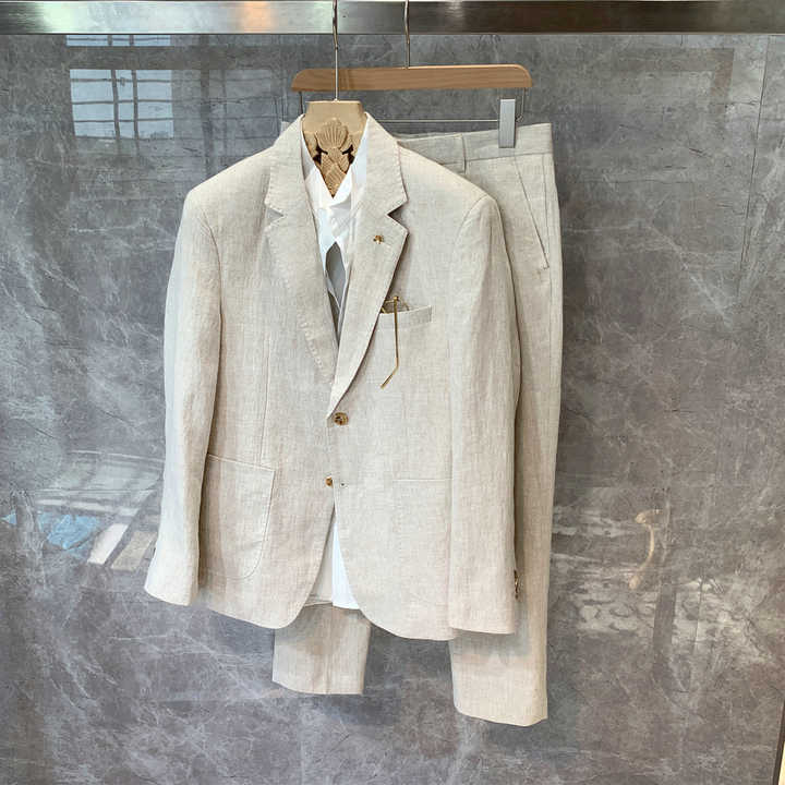 Lightweight Linen Suit for Men Single-Breasted Summer Wedding Suit Set with Casual Blazer | Solid Color Formal Groomsmen Attire