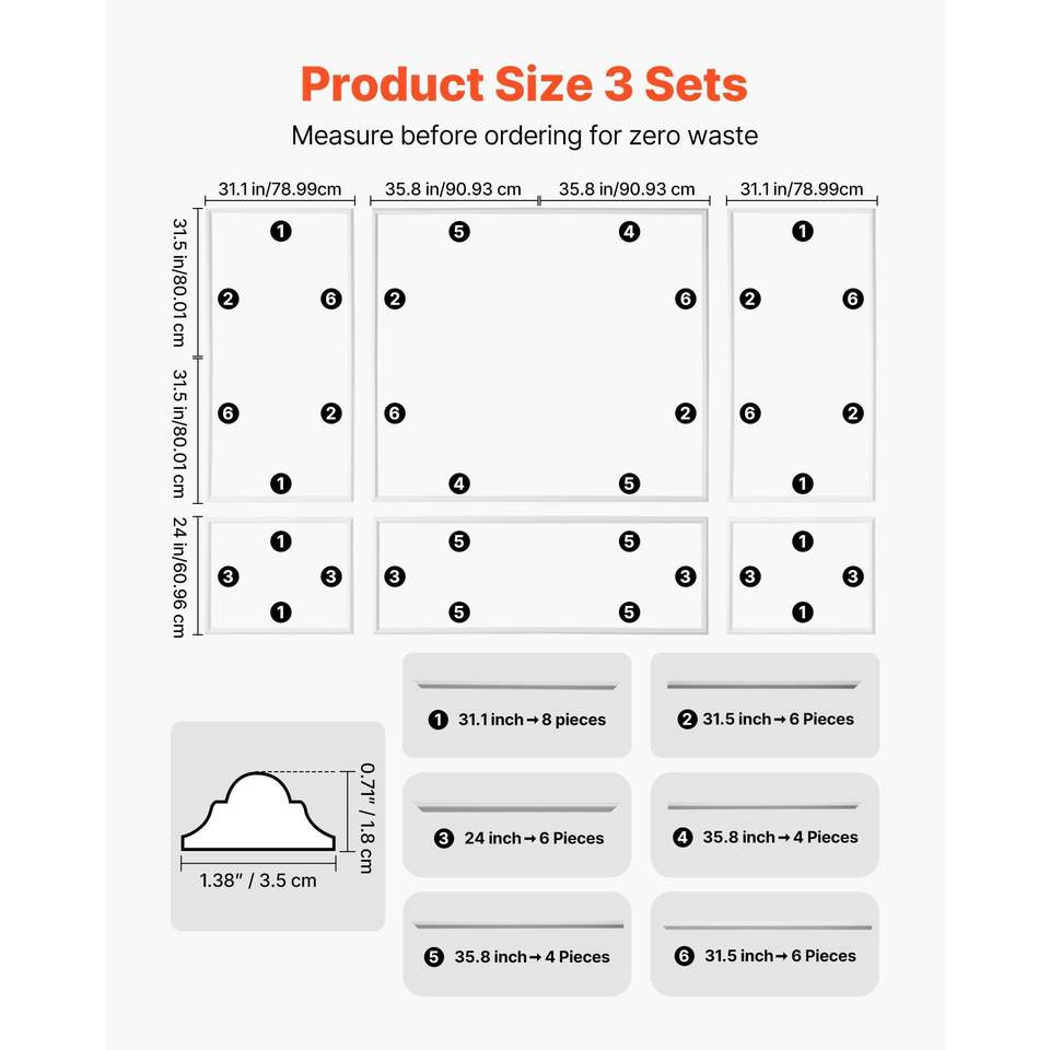 Kit di 3 Pannelli in Polistirolo Leggero Verniciabile per Rivestimento Murale, Facile Installazione, Decorazione d'Interni