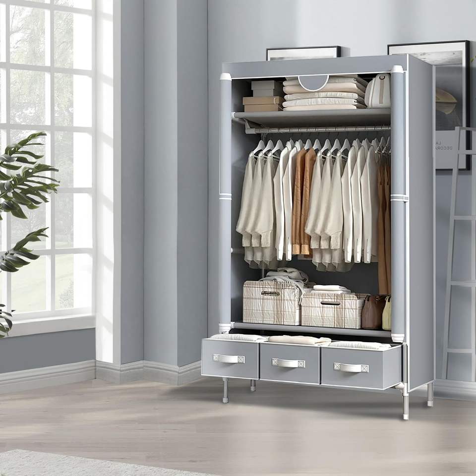 Armadio Portatile Leggero con Porta Scorrevole e Appendiabiti, 3 Cassetti, Design con Tenda per Organizzare e Conservare Vestiti