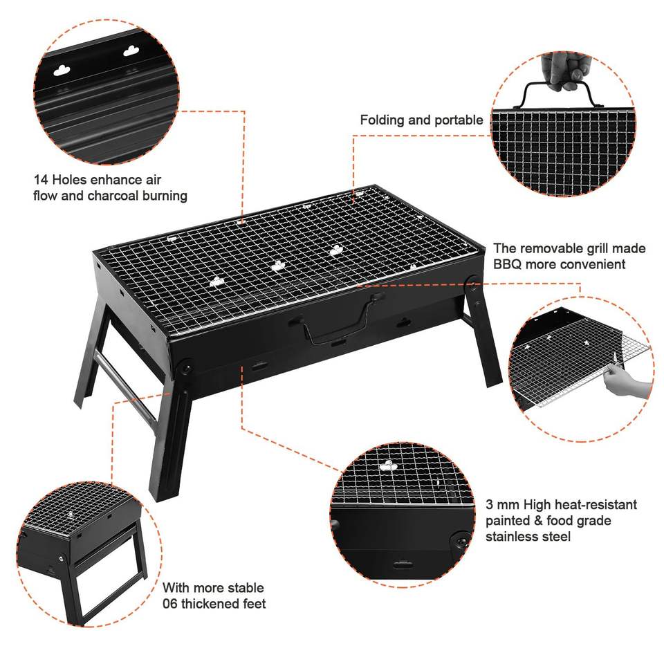 Lightweight Portable Foldable BBQ Charcoal Grill for Camping Picnics Travel-for RV Grilling in Garden