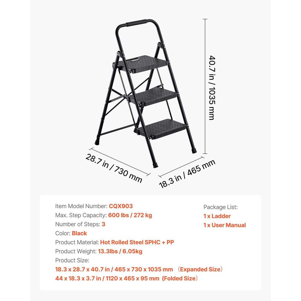 Scala Pieghevole in Acciaio a 3 Gradini, Leggera e Portatile, con Pedale Antiscivolo e Impugnatura Confortevole, Capacità 600 Libbre