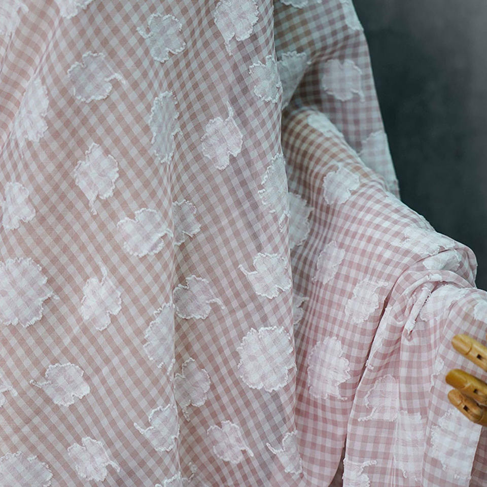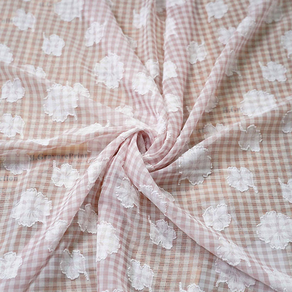 Tessuto in poliestere Chiffon con perla chiara leggera in tessuto Jacquard con taglio aggrovigliato tessuto a macchie di lino per camicia in Tulle da donna