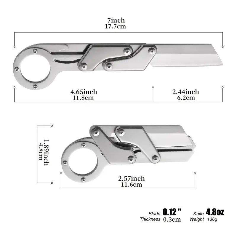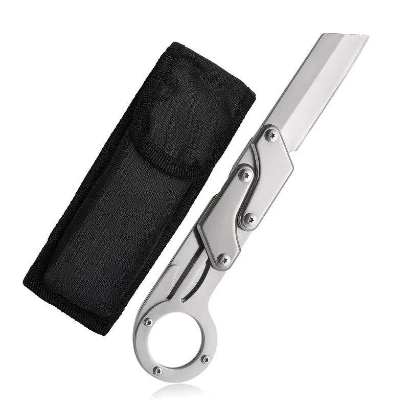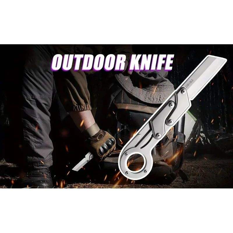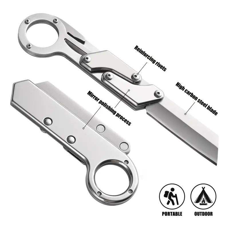 Coltello Pieghevole Compatto in Acciaio Inossidabile Argento Leggero, Lama Affilata, Design Resistente, Impugnatura a Due Mani, Strumento di Sopravvivenza per Esterni