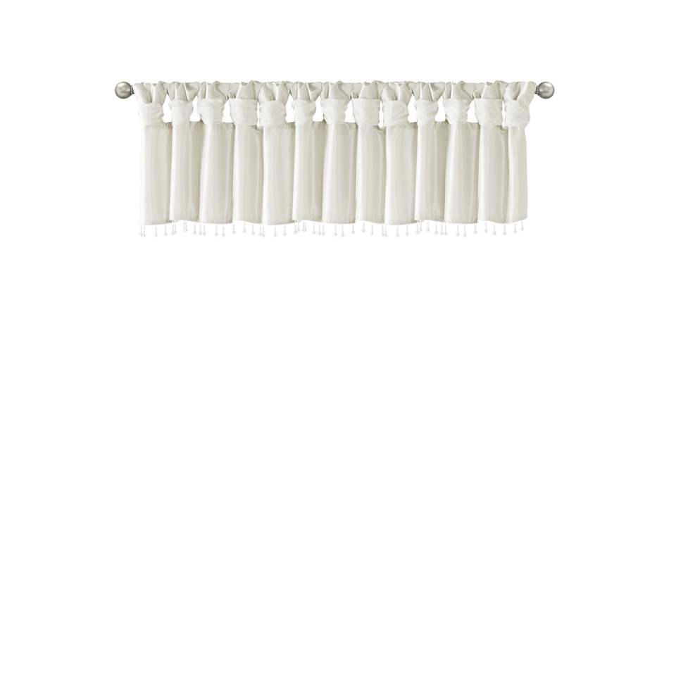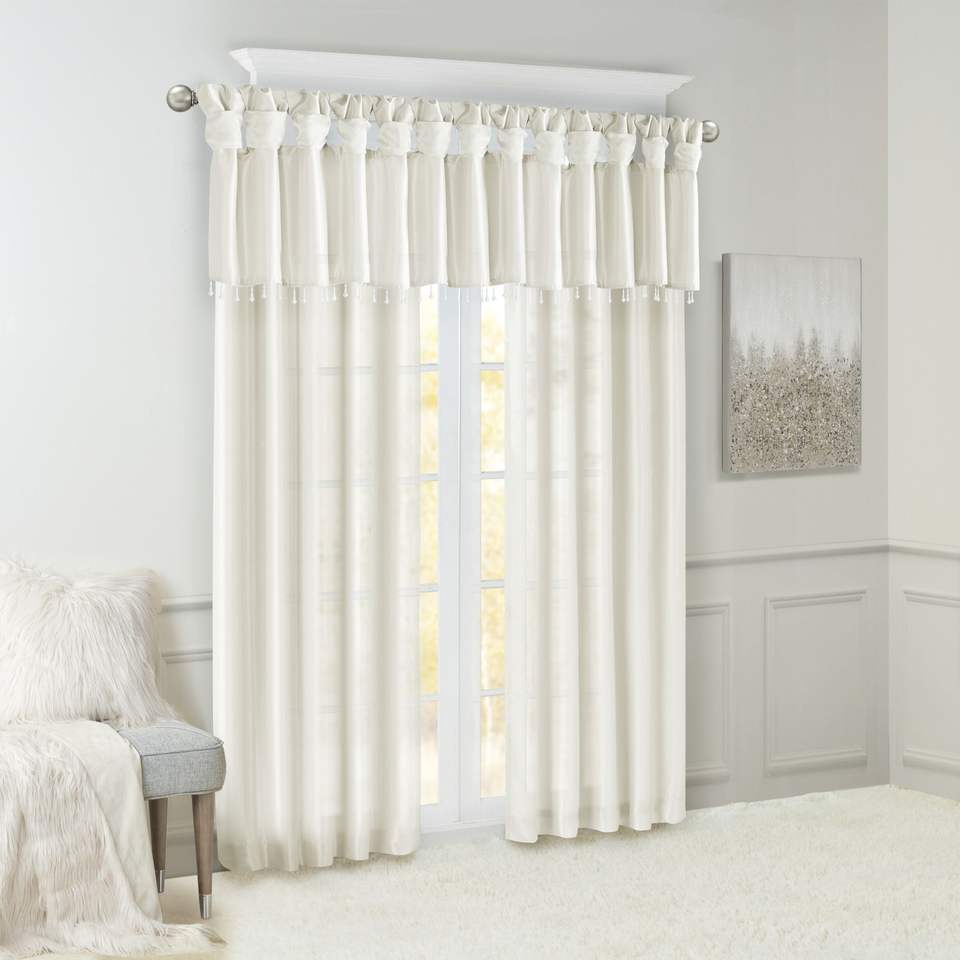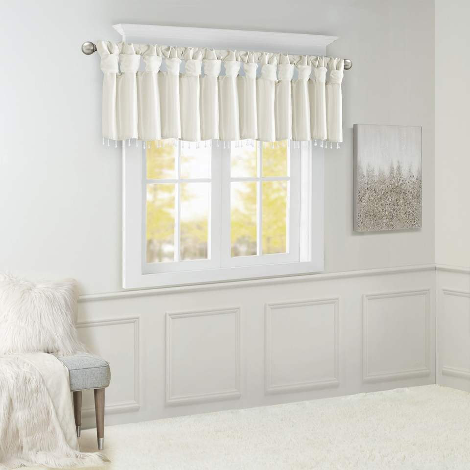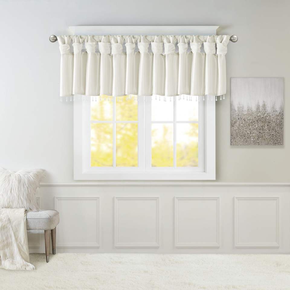 Lightweight White Faux Silk Valance with Beads 50x26" Curtains & Valances