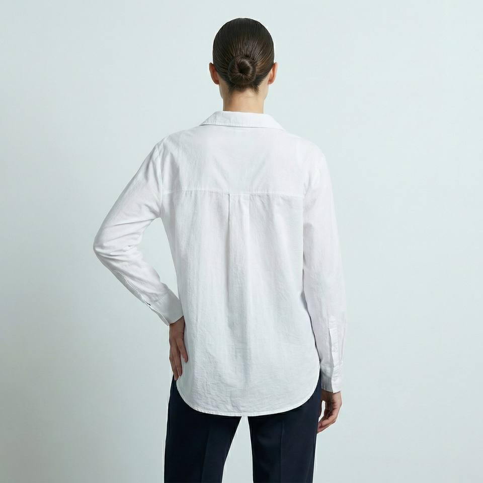 Camicia Formale Leggera da Donna in Popeline Elasticizzato Traspirante con Tasca sul Petto e Colletto, 97% Cotone, Taglia Unica (38-44)