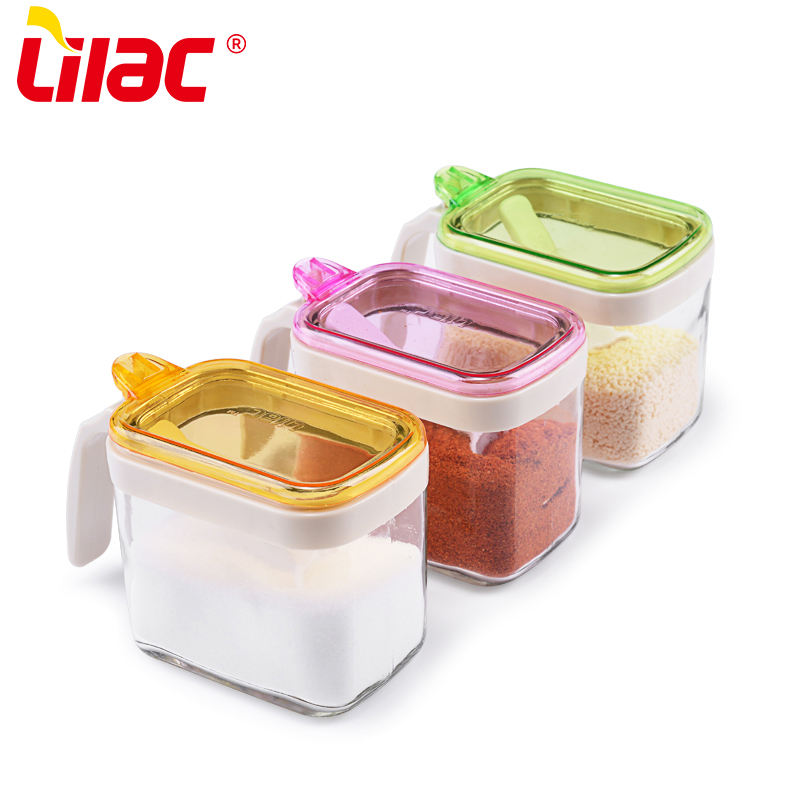 Lilac Bsci Lfgb 340ml*3 Seasoning Jar Set Village Kitchen Storage Spice Pot Glass Spice Jars