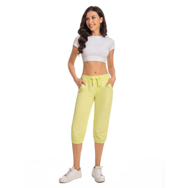 Pantaloni Jogger Corti da Donna Jenna Rose Verde Lime in Poliestere Leggero, per Sport, Fitness e Yoga, con Coulisse in Vita e Vestibilità Elasticizzata