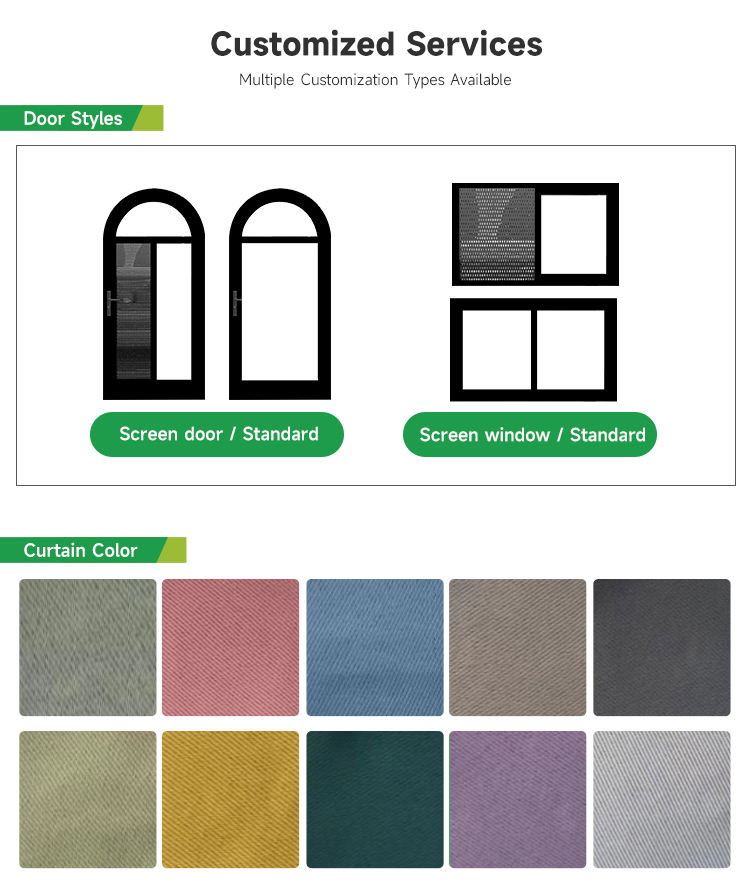 Accessories:Door,ventilation, mechanical locks, curtains, LED strips