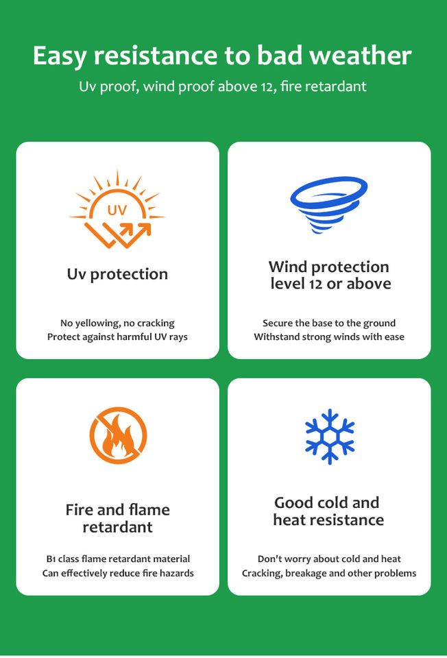 Feature:Windproof/Waterproof/lame retardant/ UV protect