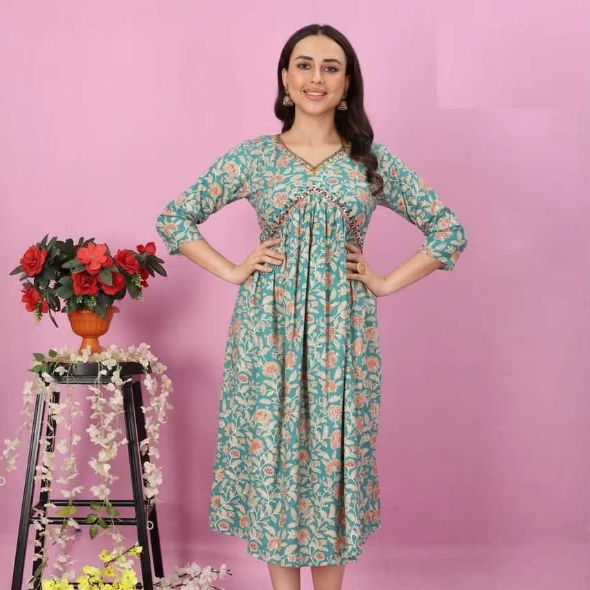Lina ha approvato Kurti con stampa pesante in Rayon da donna multicolore con vero specchio lavorato a mano-abbigliamento indiano e pakistano