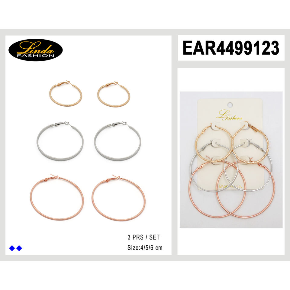 Linda FASHION Fashion Hoop Earrings Gold Plated Alloy Women's Trendy Party Jewelry 3 Pairs Geometric Design