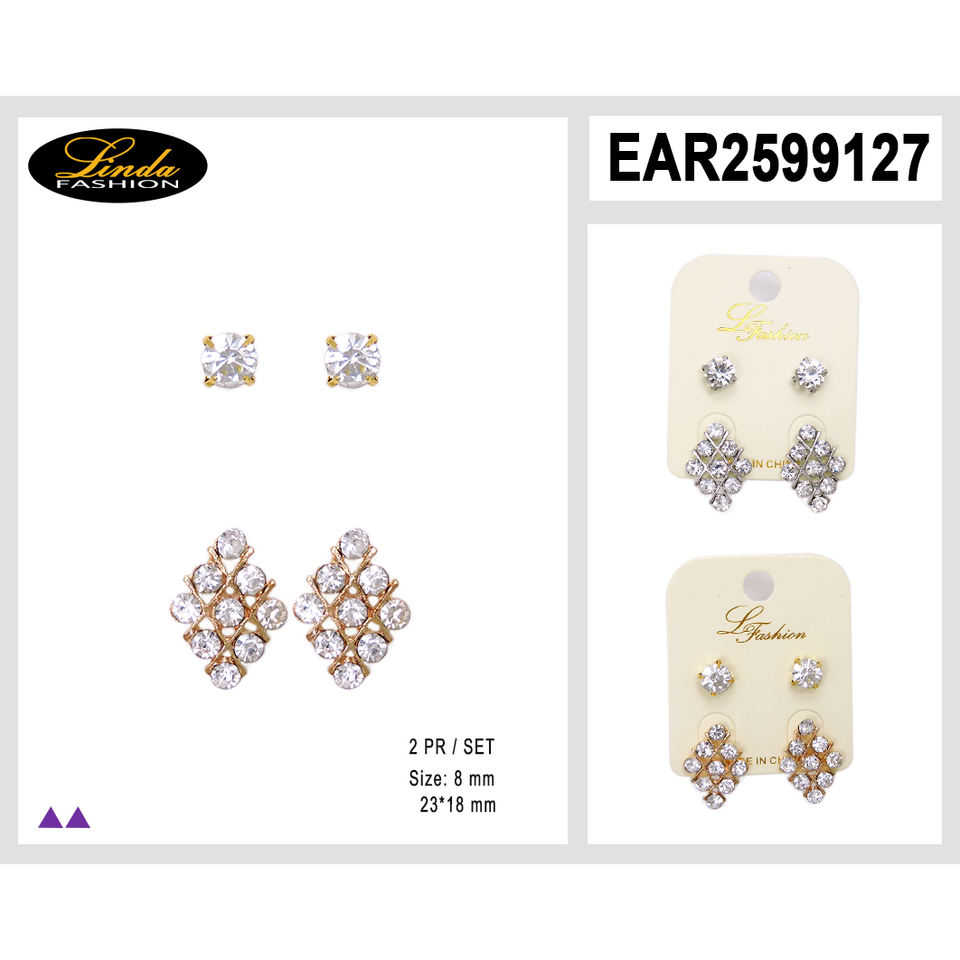 Linda Fashion Chandelier Earrings Gold Plated Crystal Geometric Studs 8 Mm Party Women's Jewelry Set
