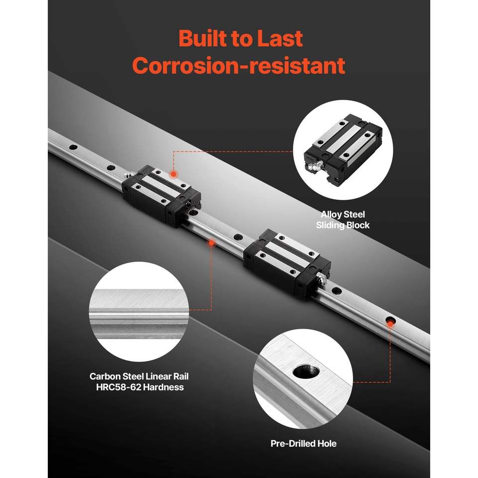 Kit Guida Lineare HGR20 2 Pezzi 1000mm Antiruggine, Guide di Movimento Lineare ad Alta Precisione con 4 Blocchi di Scorrimento con Cuscinetti