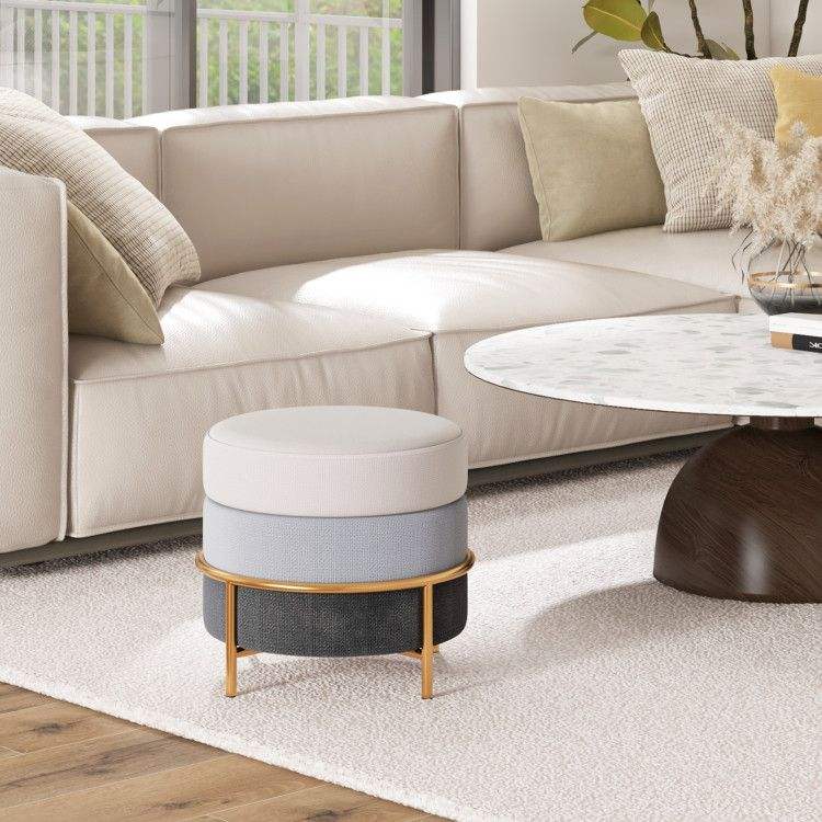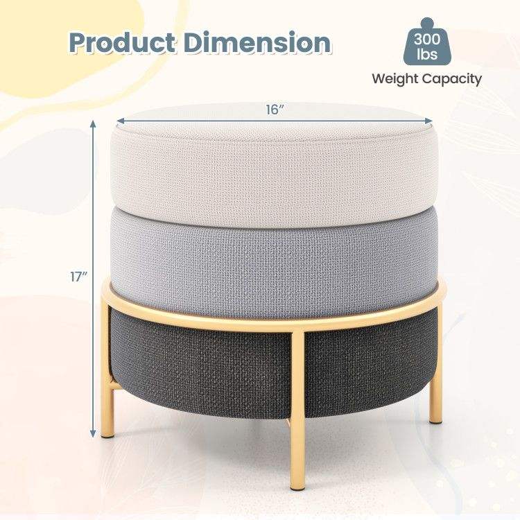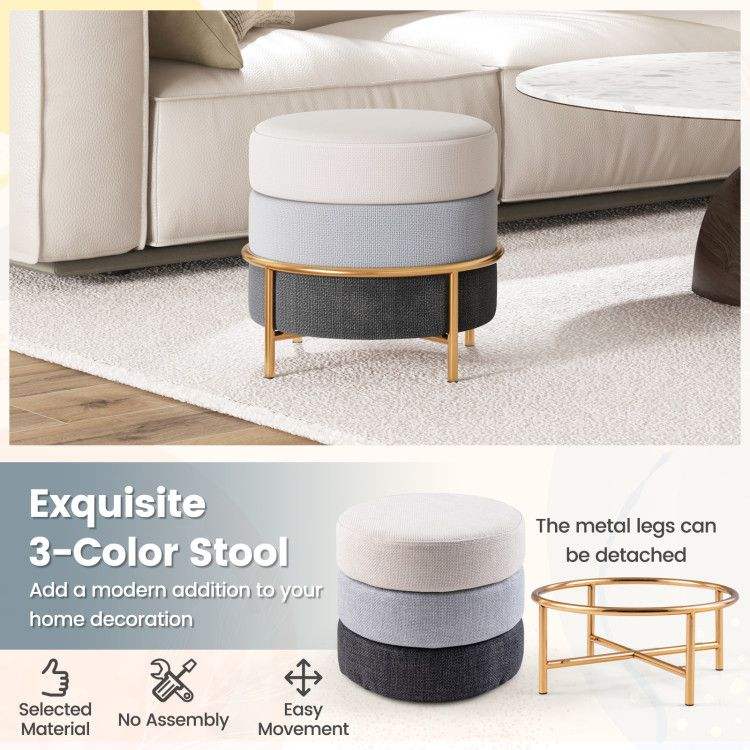 Pouf imbottito in tessuto di lino con gambe in metallo dorato e piedini antiscivolo - Sgabelli e pouf