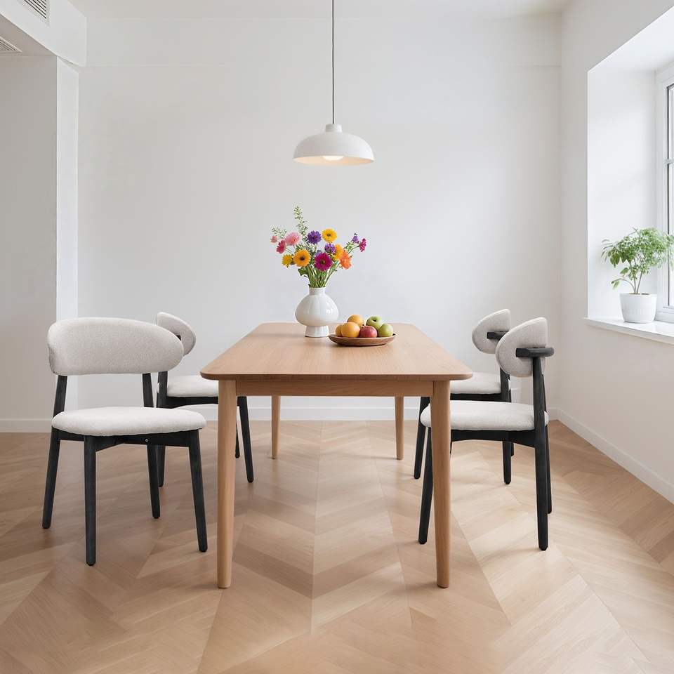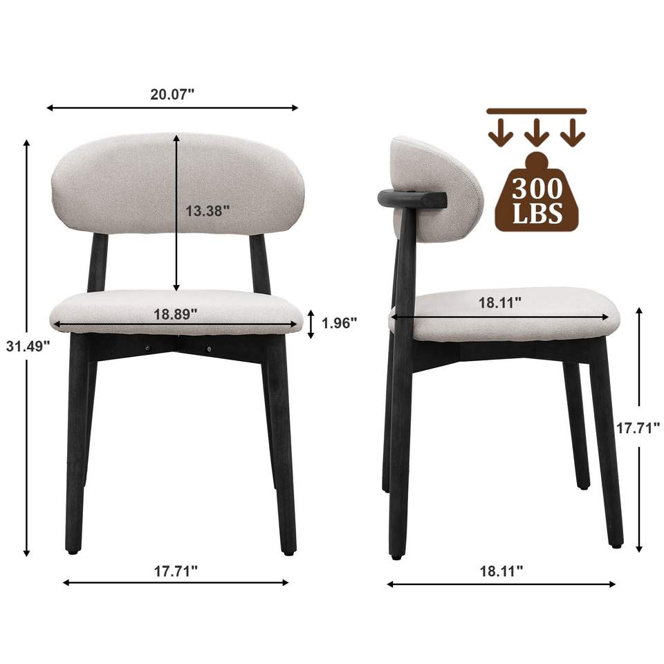 Set di 4 Sedie da Pranzo Imbottite in Cotone-Lino Grigio, Gambe in Legno Massello Nero, Design Senza Braccioli per Cucina e Ristorante