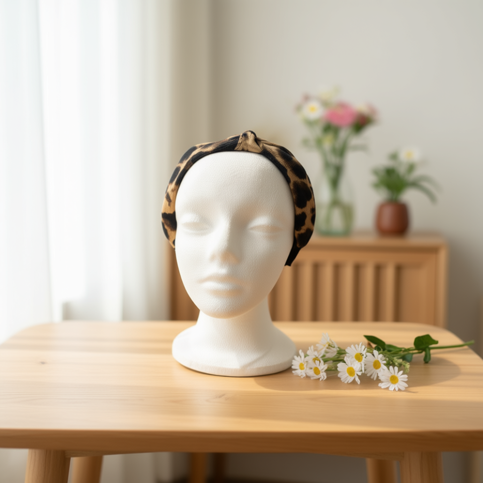Linen Knotted Headband Leopard Print Women Adjustable Hair Accessory Casual Japan And Korean Style 12Pcs
