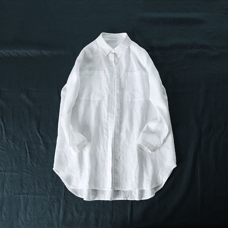 Linen Long-sleeved Shirt for Women Large Medium Style Thin Shirts for Spring and Autumn Female Top Shirts