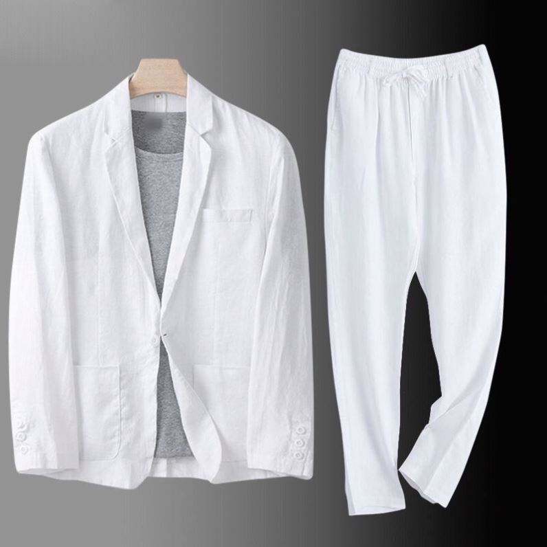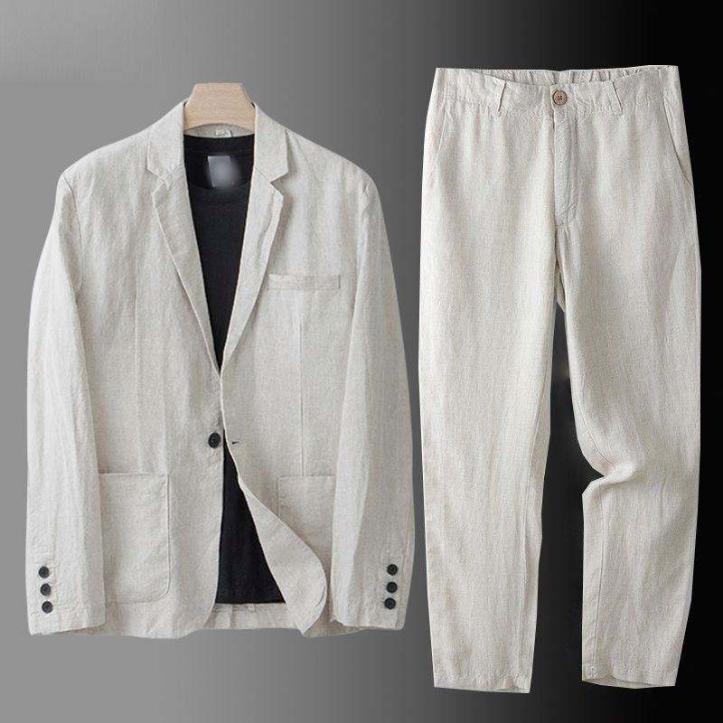 Completo in Lino a 2 Pezzi, Giacca Estiva da Uomo con Protezione Solare, Giacca Larga in Cotone e Lino, Completo Casual