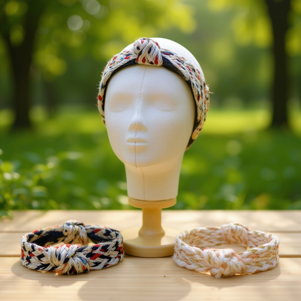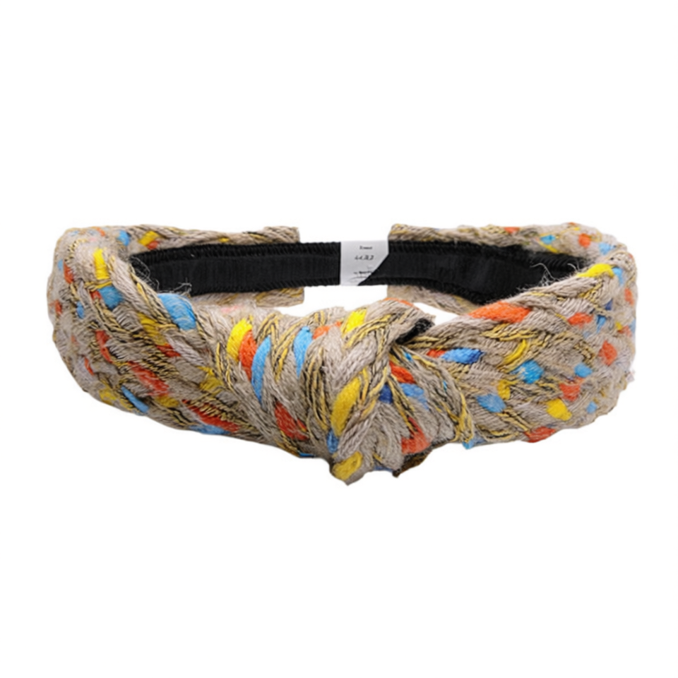 Fascia per capelli in lino intrecciato con nodo, multicolore, ampia, accessorio moda per donna
