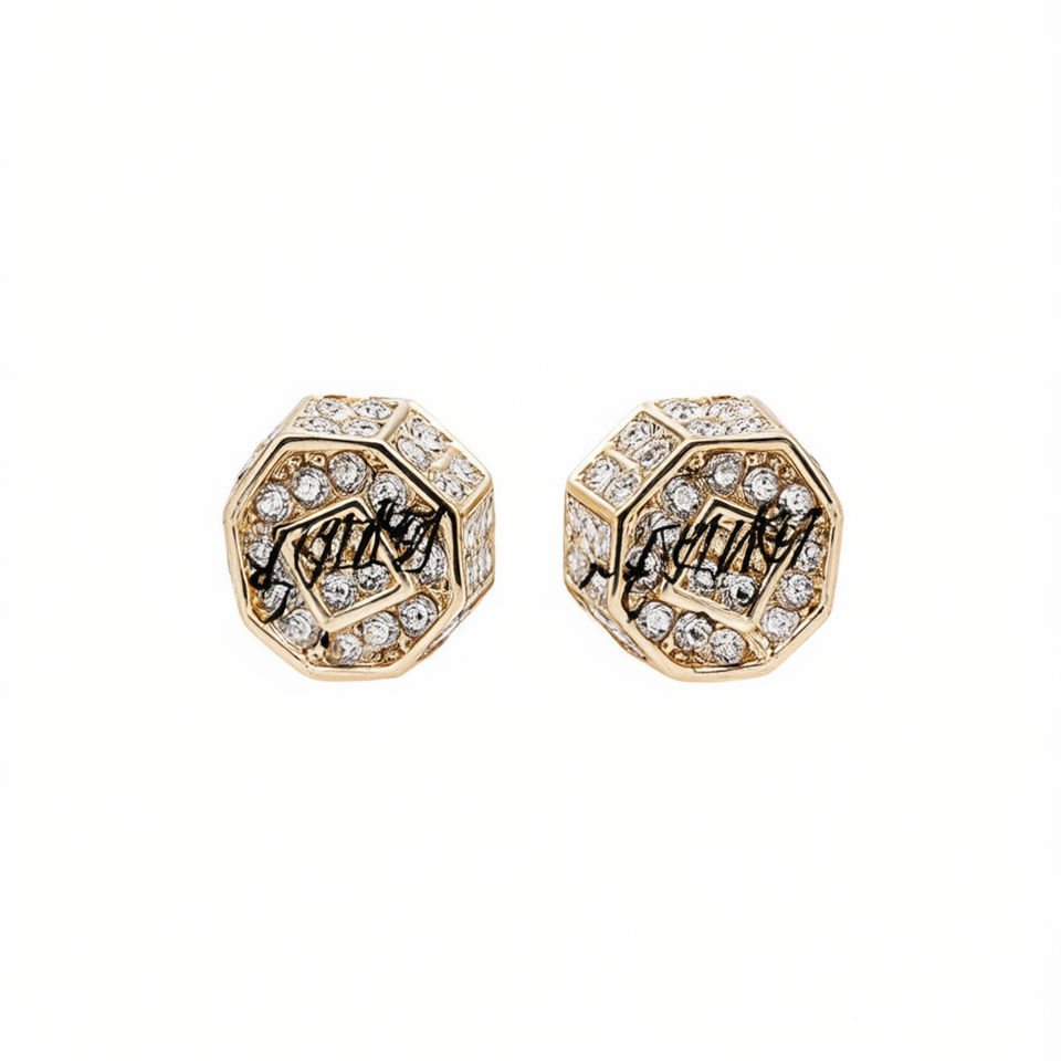 Ling Luxury Geometric Stud Earrings 18K Gold Filled Crystal Rhinestone Bezel Setting Unisex Everyday Wear