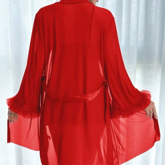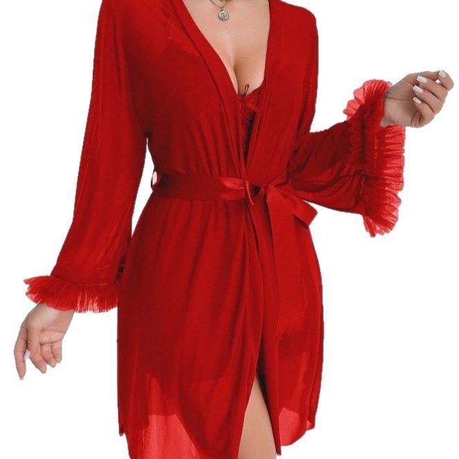 Set di Lingerie Sexy con Vestaglia in Pizzo Trasparente e Canotta in Pizzo Traspirante