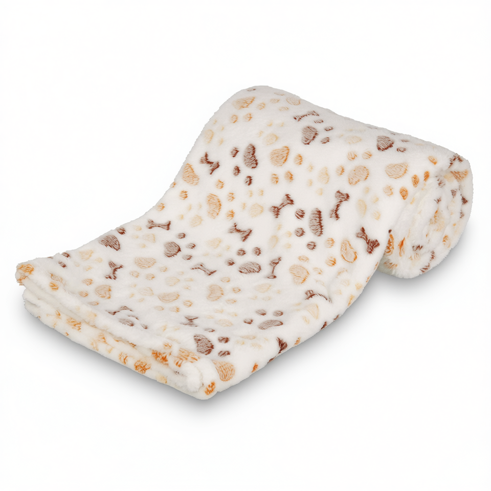 Coperta per Animali Domestici Lingo 150x100 Cm, Bianca Beige, Morbido Pile, Coperta per Cani e Gatti