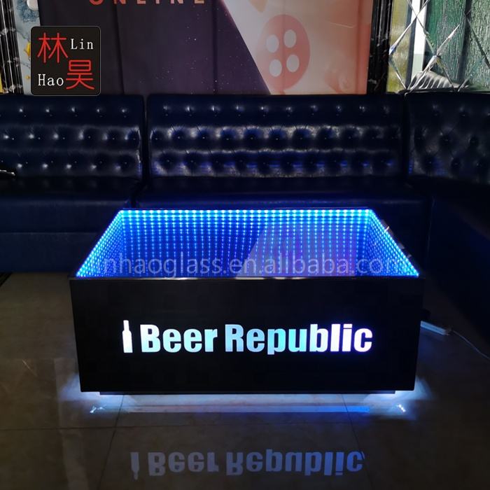 Tavolo in Vetro LED Infinito Linhao, Stile Contemporaneo, Tavolino da Caffè o da Bar per Night Club, Tavolo a Specchio LED con Effetto Infinito