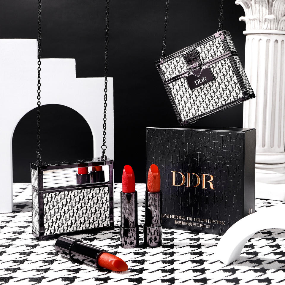 Link Black Bag Lipstick Kit 3 Colors / Set Cute Bag Velvet Matte Lipstick Popular Colors Lips Makeup Chain Handbag Lipsticks