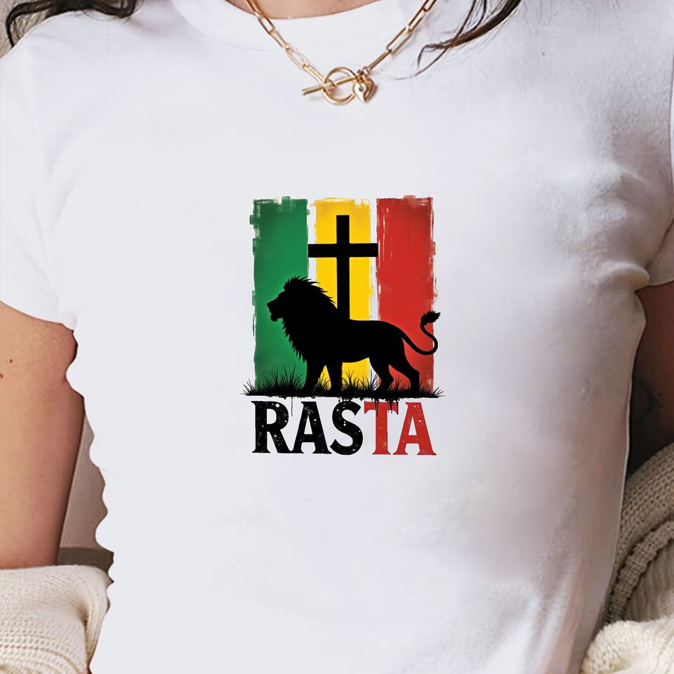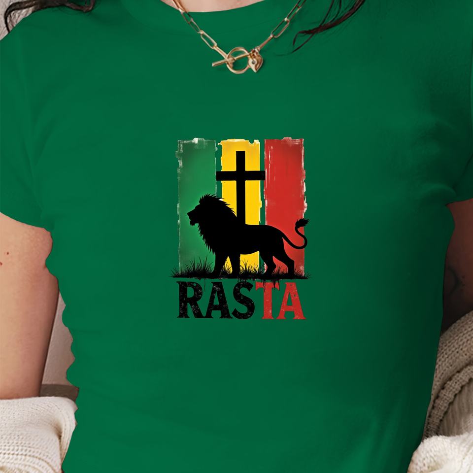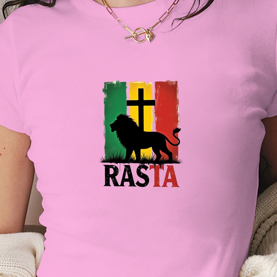 T-shirt corta lavorata a maglia slim fit da donna Y2K con design Leone con colori RASTA
