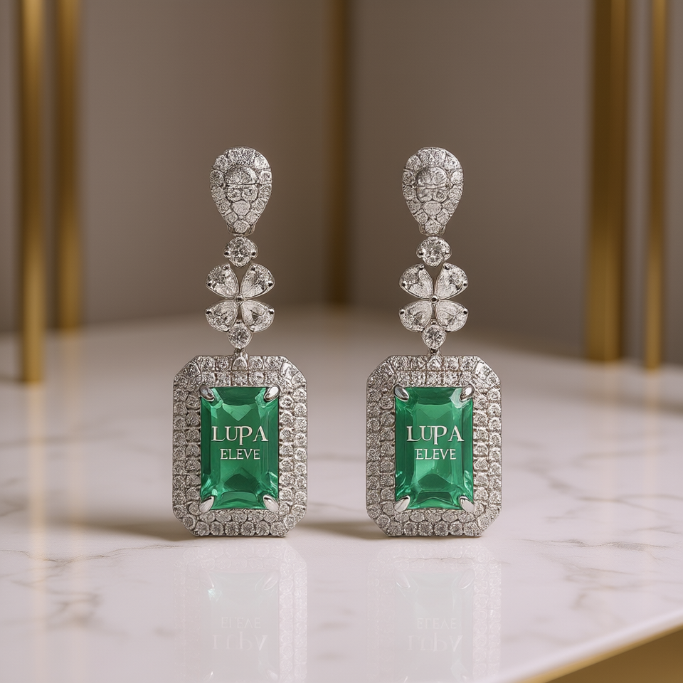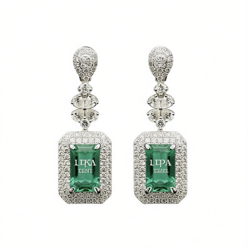 Lipa Ciane Green Gemstone Drop Earrings Emerald Cut Crystal Rhinestone Women's Classic Party Jewelry