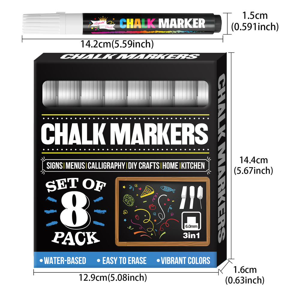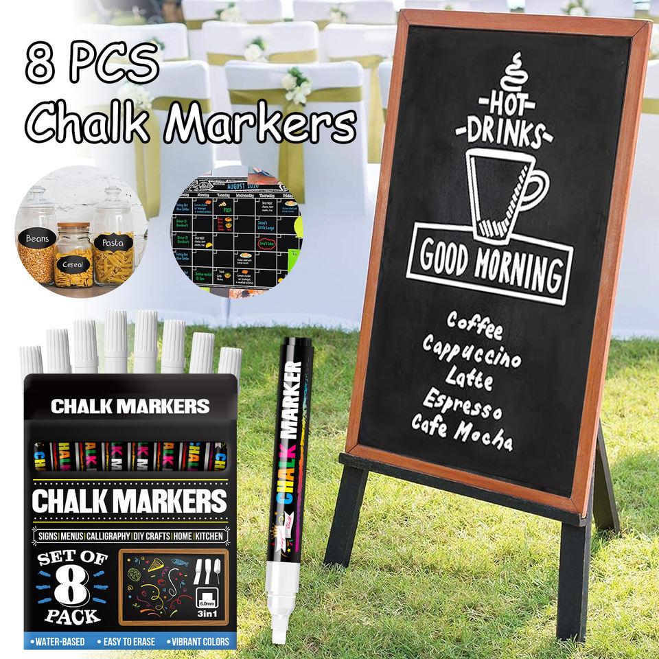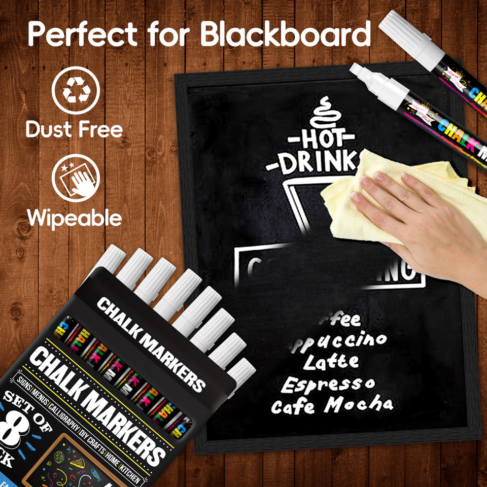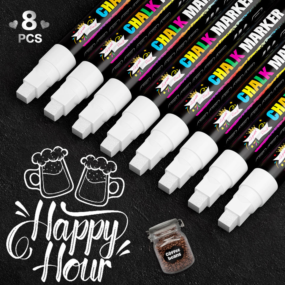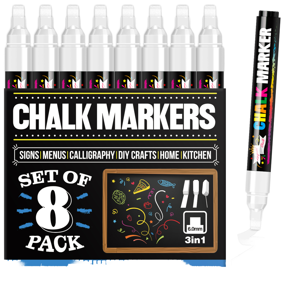 Pennarello a Gesso Liquido - Pennarello Bianco Cancellabile a Secco - per Lavagne, Finestre, Bacheche, Vetro (Confezione da 8) 6mm
