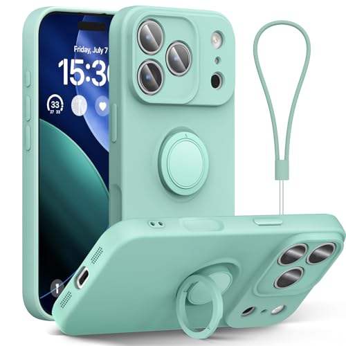 Cover in Silicone Liquido per iPhone 17 Pro Max con Cinturino da Polso, Compatibile con 16 Pro 15 14 13 12 Pro Max, Antiurto con Anello di Supporto
