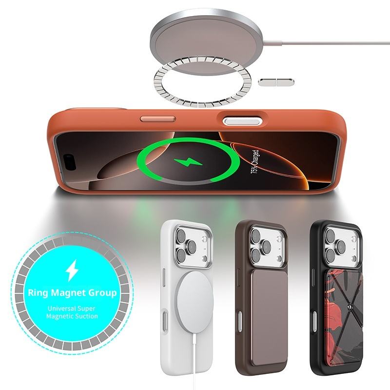 Custodia per telefono in Silicone liquido per 17/16/15promax colore solido foro sottile Design magnetico antiurto include impugnatura del telefono