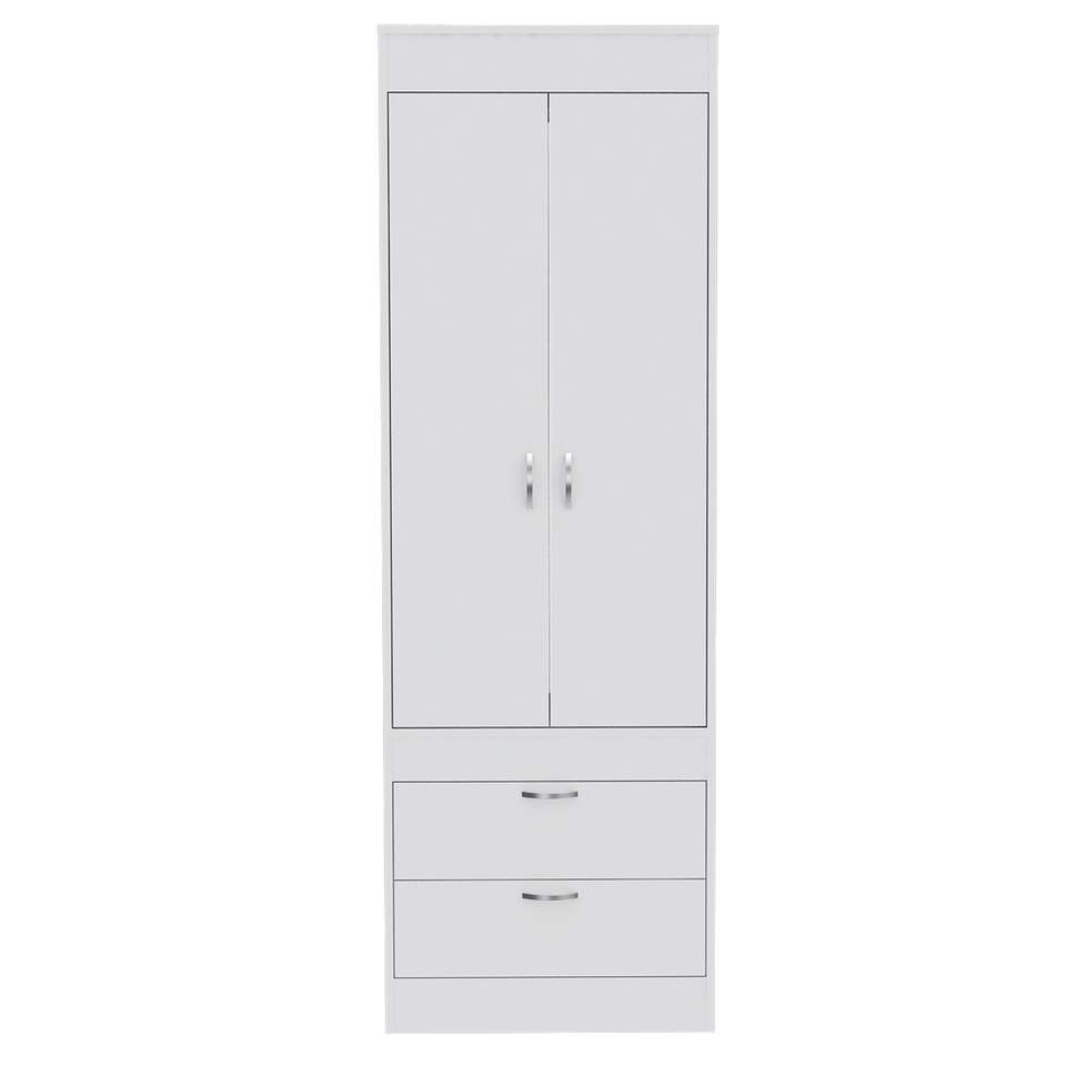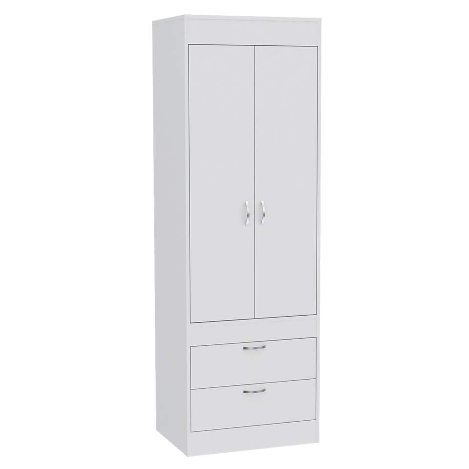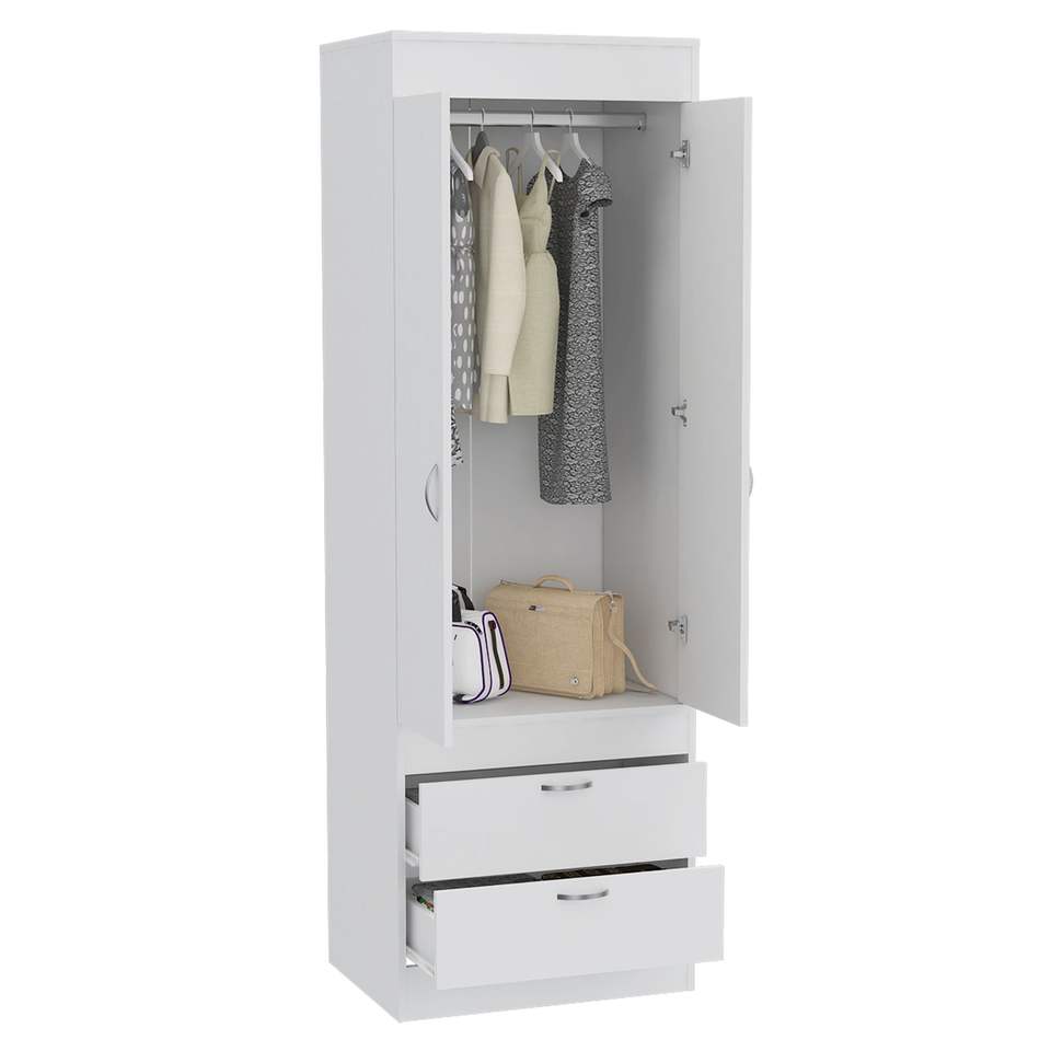 Lisboa White Armoire Rod with Double Doors and Two Drawers Metal Handles-Elegant Wardrobe