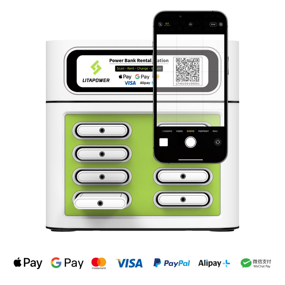 Stazione di ricarica per power bank condivisi Litapower OEM a 8 slot, 36W ricarica rapida, chiosco di ricarica per cellulari