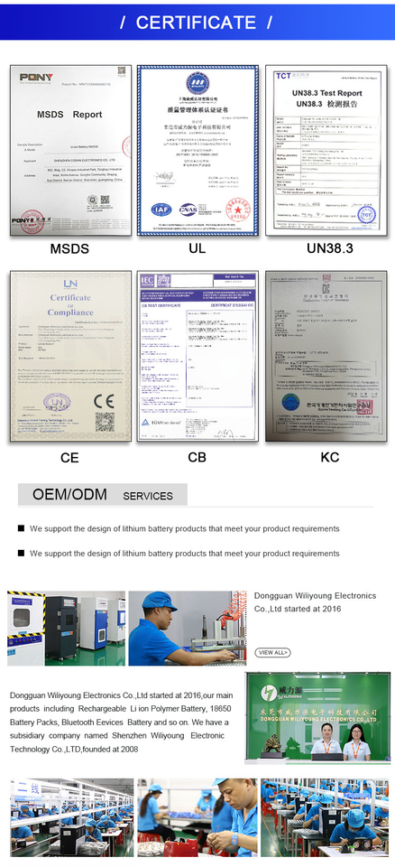 Servizi personalizzati:Dimensioni/capacità/connettori/PCB personalizzati per batterie