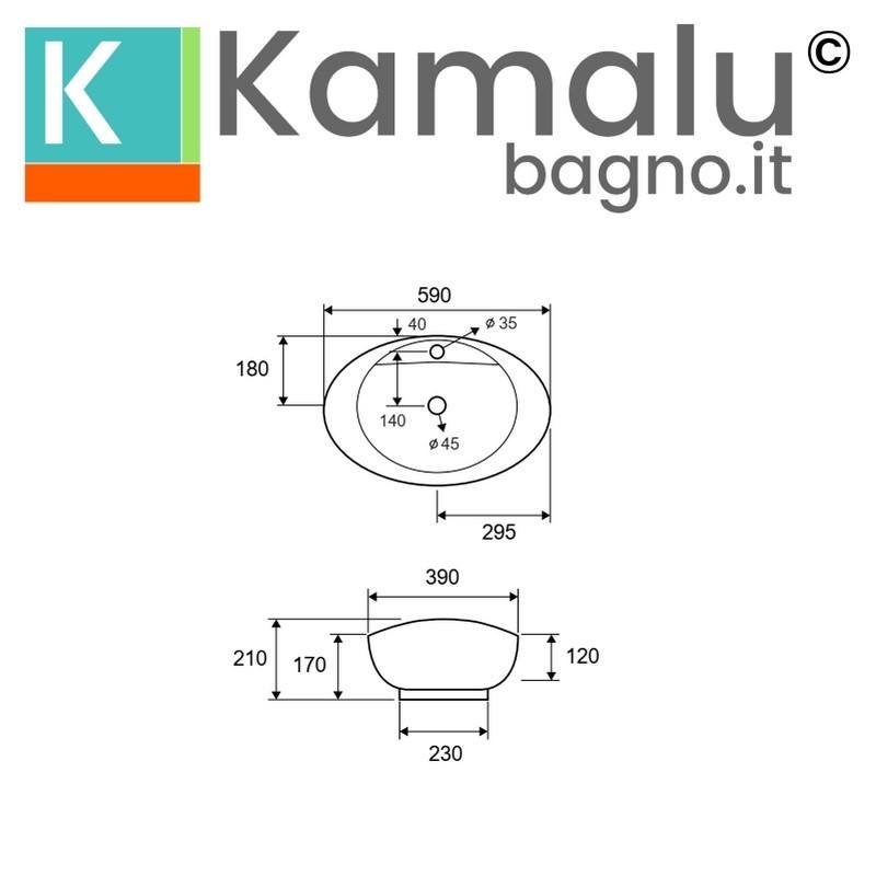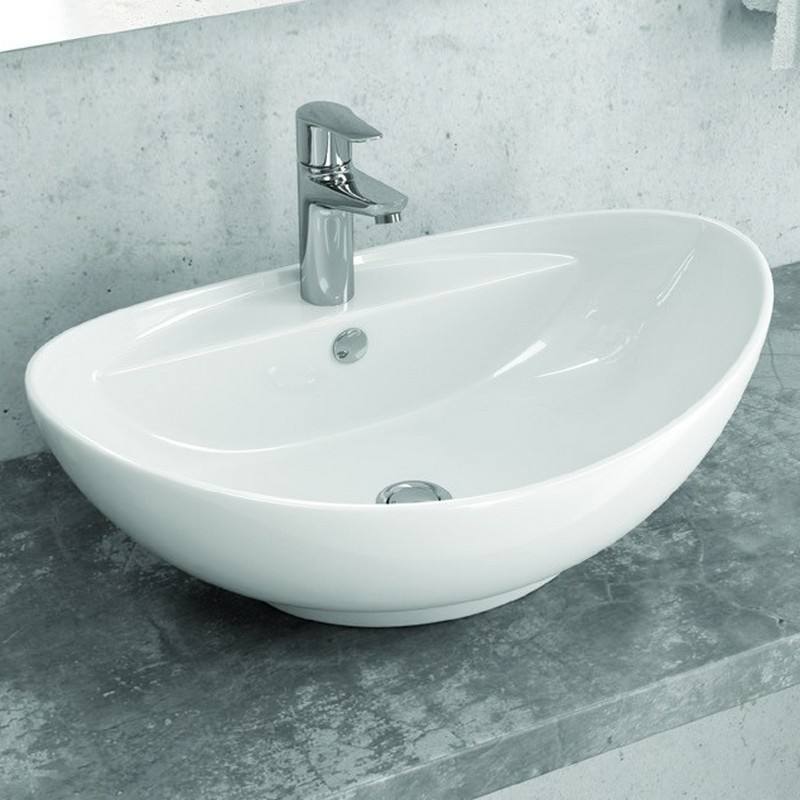 Litos-359 Kamalu White Ceramic Oval Countertop Basin Stylish Bathroom Sink Design