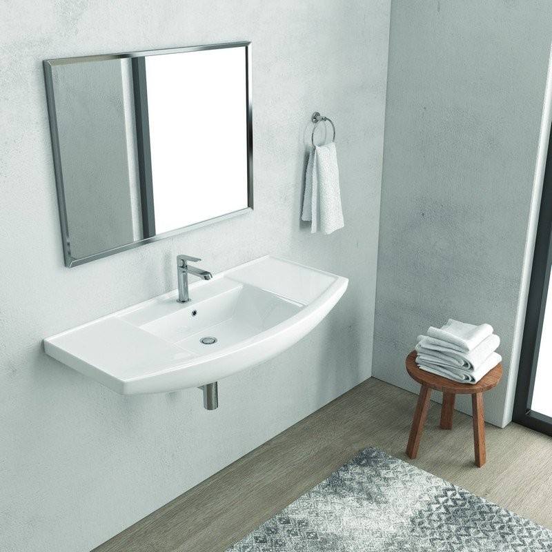 Litos-BN80 Kamalu Lavabo da Bagno in Ceramica Sospeso 80cm Stile Moderno in Pietra Granitica per Lavaggio Mani Uso Esterno Hotel Salone